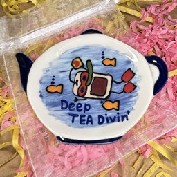 Ceramic " Deep Tea Divin' " Teabag Dish