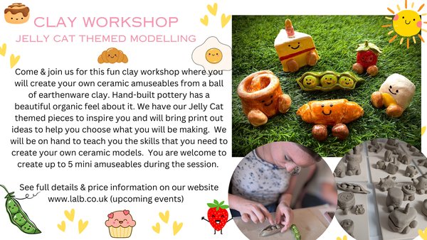 Join us for this fun workshop where we will be making Jelly Cat style amuseables from clay. Full instructions & guidance will be given during the session.