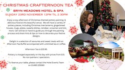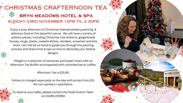 Join us at Bryn Meadows Hotel & Spa for an indulgent afternoon of delicious sandwiches, cake & festive pottery painting. The perfect excuse for a pre-Christmas catch up and a relaxing afternoon of creativity.
