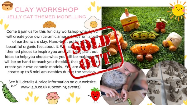 Join us for this fun workshop where we will be making Jelly Cat style amuseables from clay. Full instructions & guidance will be given during the session.